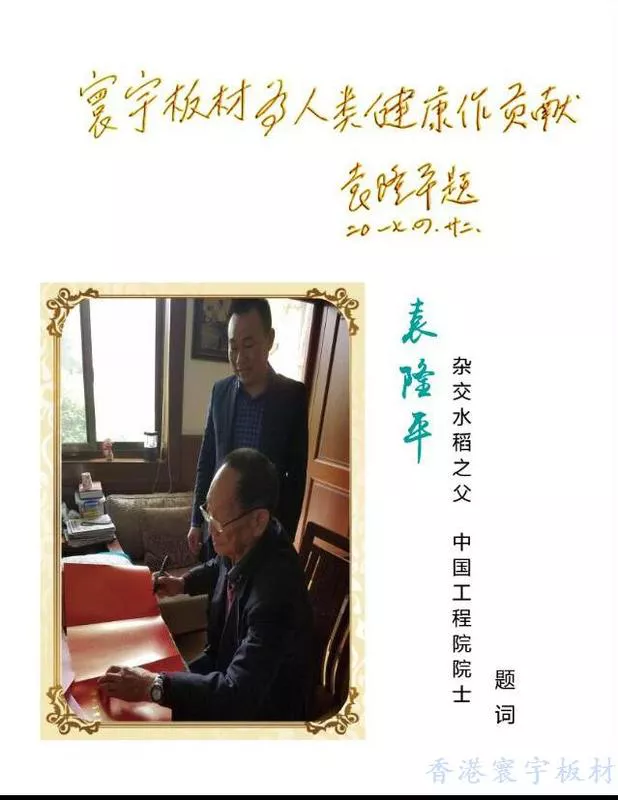 公司產(chǎn)品符合“環(huán)保、低碳、綠色、健康”消費理念, 深受廣大消費者的喜愛和社會的認可,無市場監(jiān)管、消費者投訴等不良記錄。寰宇板材系列產(chǎn)品為湖南省名牌產(chǎn)品,2017年榮登“中國板材十大品牌”;2018年榮膺“中國十大生態(tài)板品牌”“中國板材十大品牌”,并獲得世界雜交水稻之父、中國工程院院士袁隆平先生親筆題詞:“寰宇板材為人類健康作貢獻”;2019年再次榮登“中國十大板材品牌”,并獲得“湖南省科學(xué)技術(shù)進步獎”證書。
